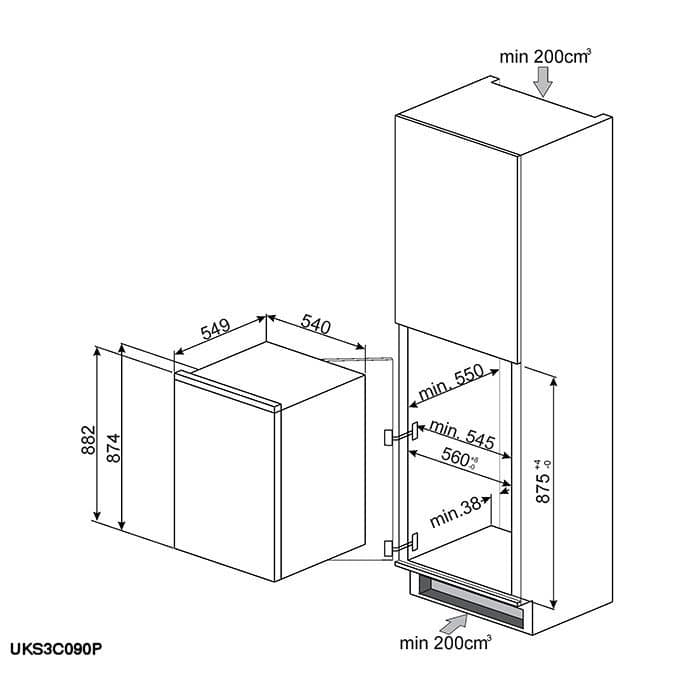 Smeg UKS3C090P 88cm Integrated In Column Fridge With Ice Box
