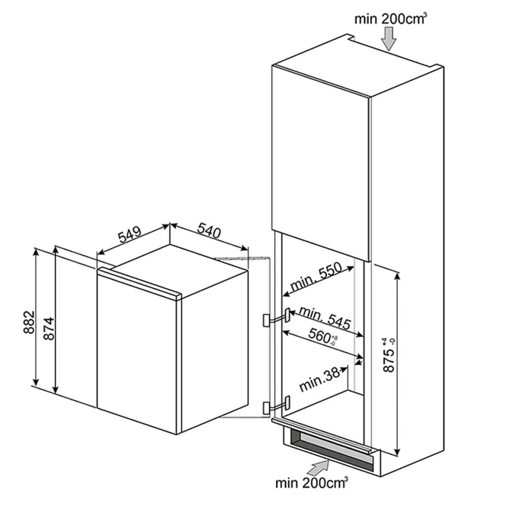 Aperture dimensions: h875-879 x w545-560 x d550mm