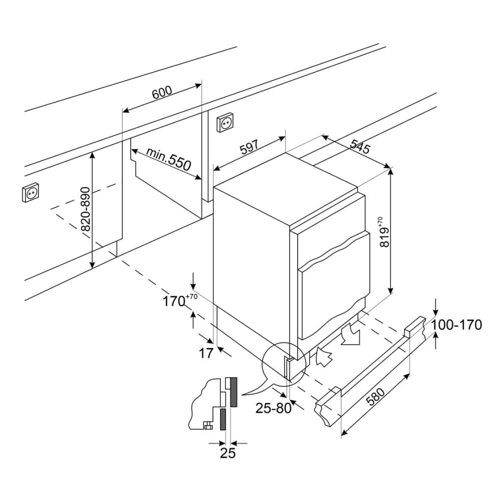 Smeg UKU8C082DE Integrated Built Under Fridge With Ice Box