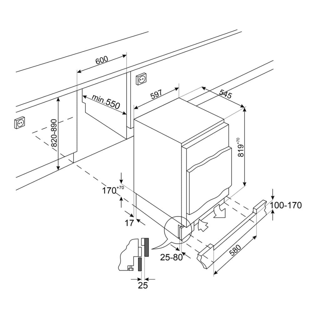 Smeg UKU8L080DE Integrated Built Under Larder Fridge