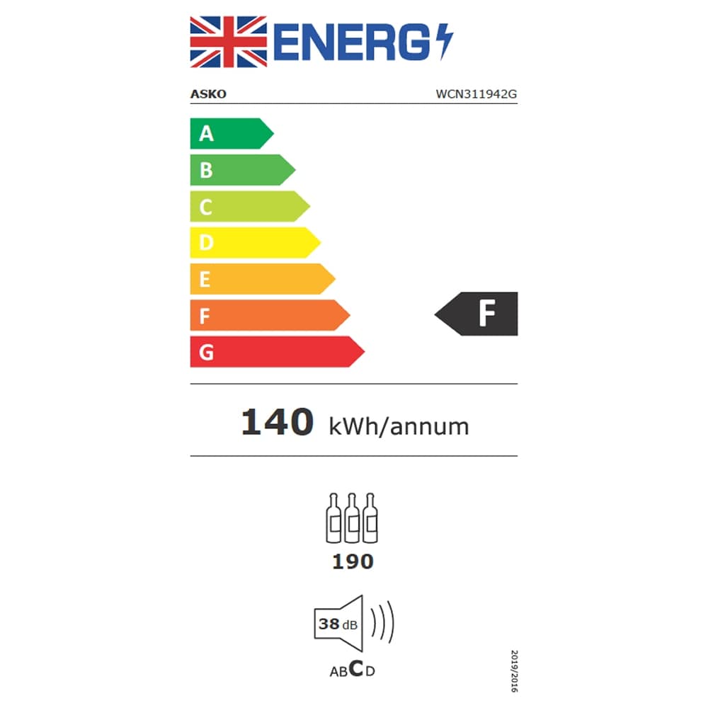The superb Asko WCN311942G.UK wine cabinet offers a 190 bottle capacity across its 3 temperature zones. Finished in black and standing at 192cm tall and 70cm wide it will certainly take pride of place in your home. The insulated glass door and dimmable internal LED lighting give this unit a truly stylish look.