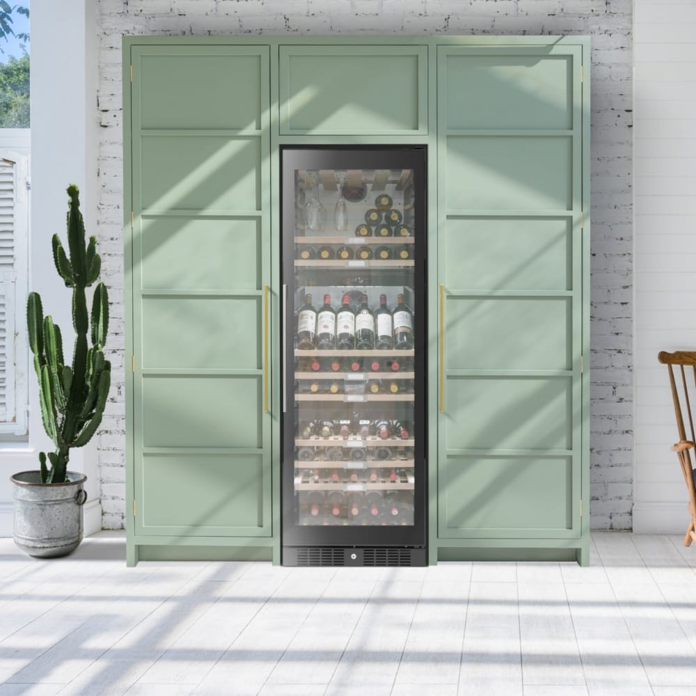 Serious wine lovers need a serious wine cooler and this cabinet from Caple means business. Boasting space for 111 wine bottles, this black wine cabinet is sure to impress. The WF1553 features 3 separate temperature zones which can be controlled independently and the 2 heaters are on standby to raise the internal temperature should the external temperature drop. It also boasts 3 humidity control water tanks, a fan assisted cooling system and a UV protected door with lock, all making for the perfect cellar like conditions to store your wine.