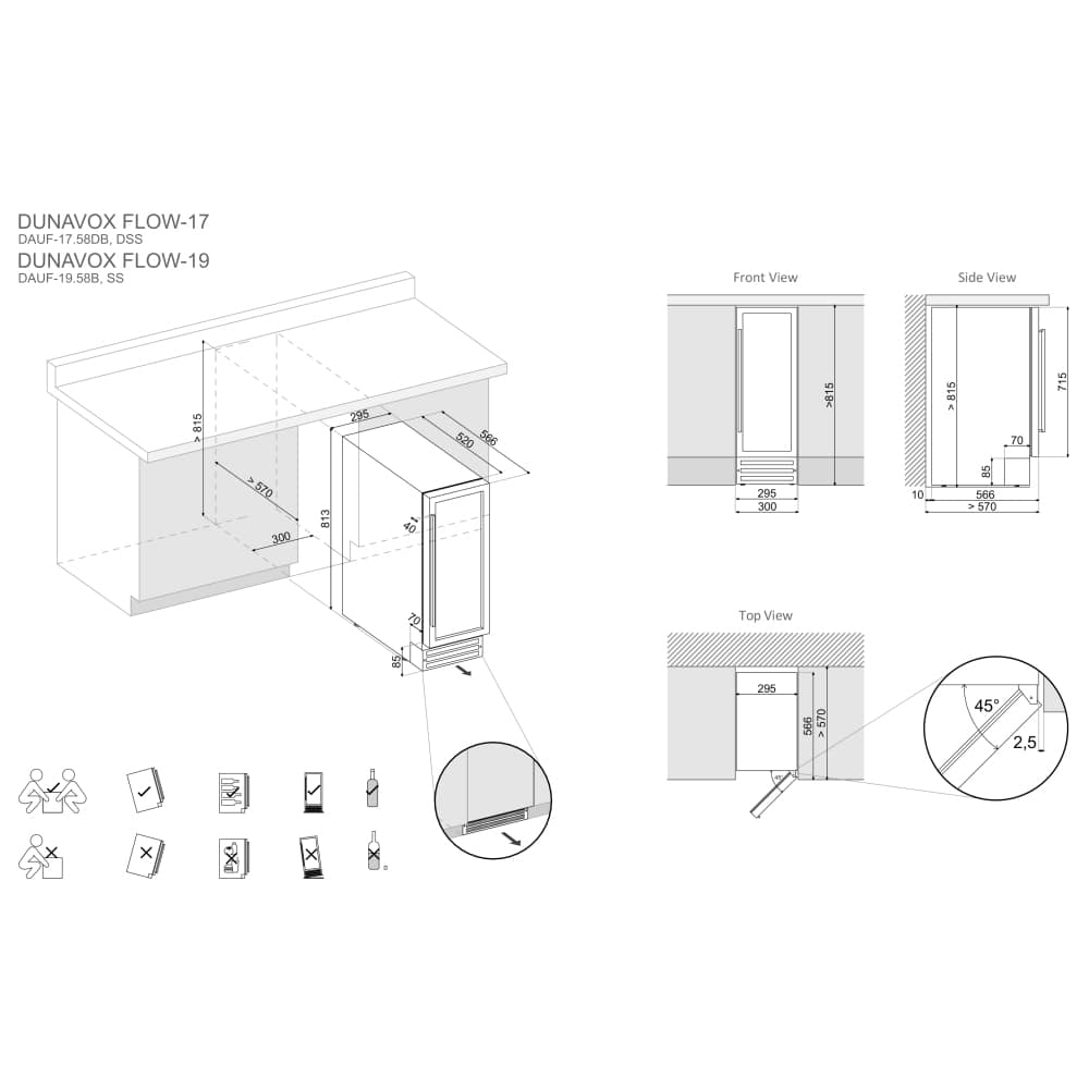 Dunavox DAUF-19.58B FLOW-19 30cm Freestanding Wine Cooler – BLACK