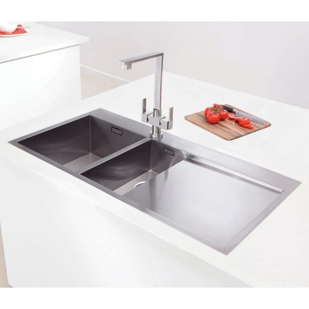This Cubit sink from Caple provides great space for your dishes with two bowls and a drainer on the right hand side. The stainless steel finish is perfect for daily use as it is incredibly durable and resistant to scratches and chips, with timeless appeal.