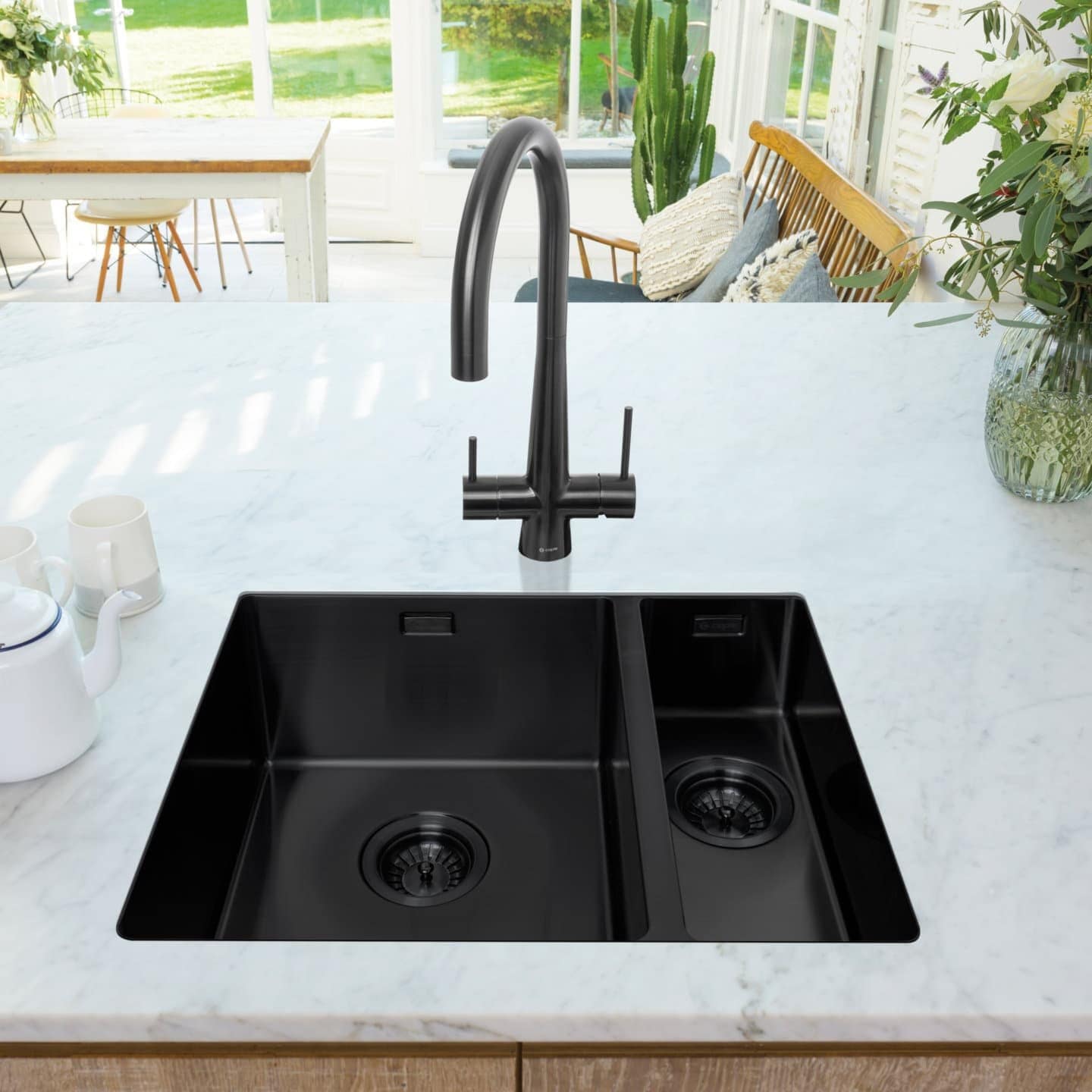 Caple MODE3415/R/BS Mode 3415 1.5 Bowl Sink Right Hand Small Bowl – BLACK STEEL