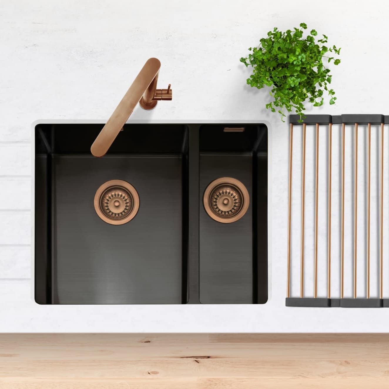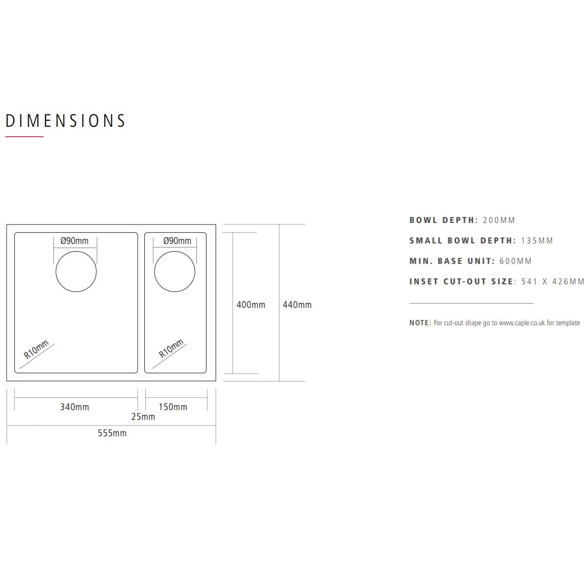 This Mode 3415 sink from Caple is finished in black steel. It features a large & a small bowl and is suitable for inset or undermount installation. Matching wastes and overflows are included but alternative colour options are also available from the Manufacturer at an extra cost.