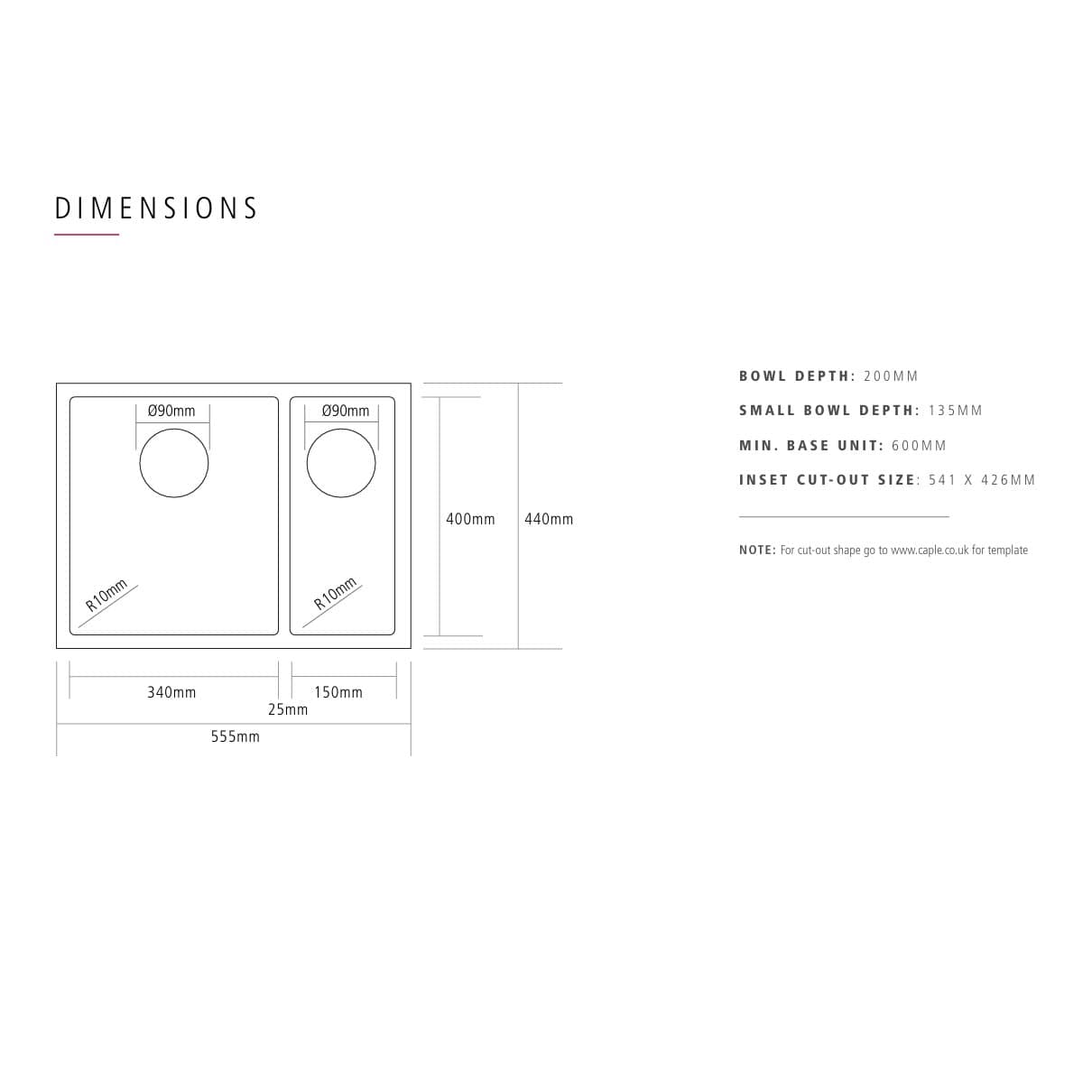 This Mode 3415 sink from Caple is finished in gunmetal. It features a large & a small bowl and is suitable for inset or undermount installation. Matching wastes and overflows are included but alternative colour options are also available from the Manufacturer at an extra cost.
