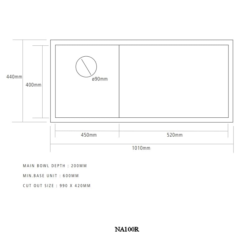 Caple NA100R Nada 100 Single Bowl Sink Right Hand Drainer – STAINLESS STEEL