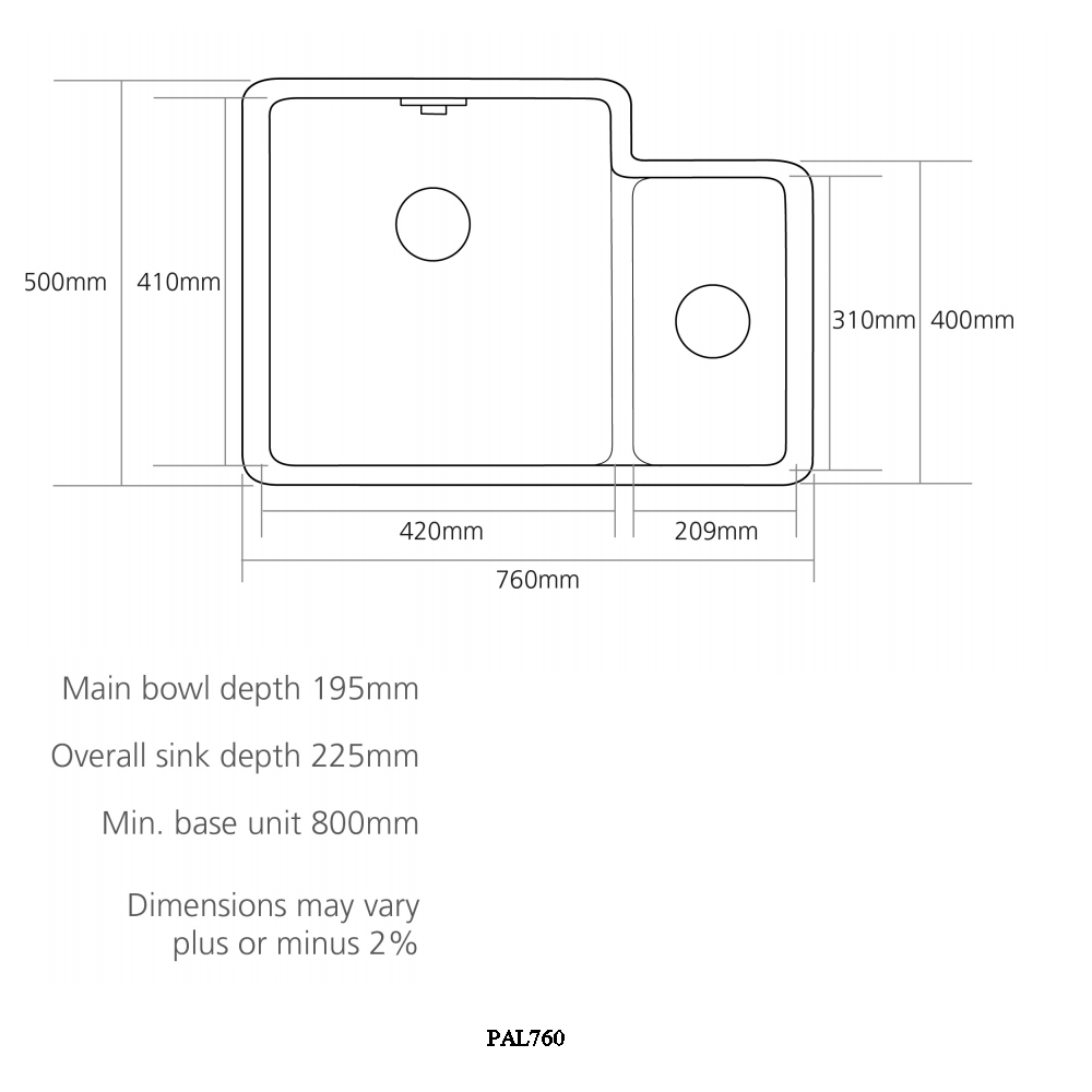 Caple PAL760 Paladin 760 1.5 Bowl Ceramic Sink Right Hand Small Bowl – WHITE