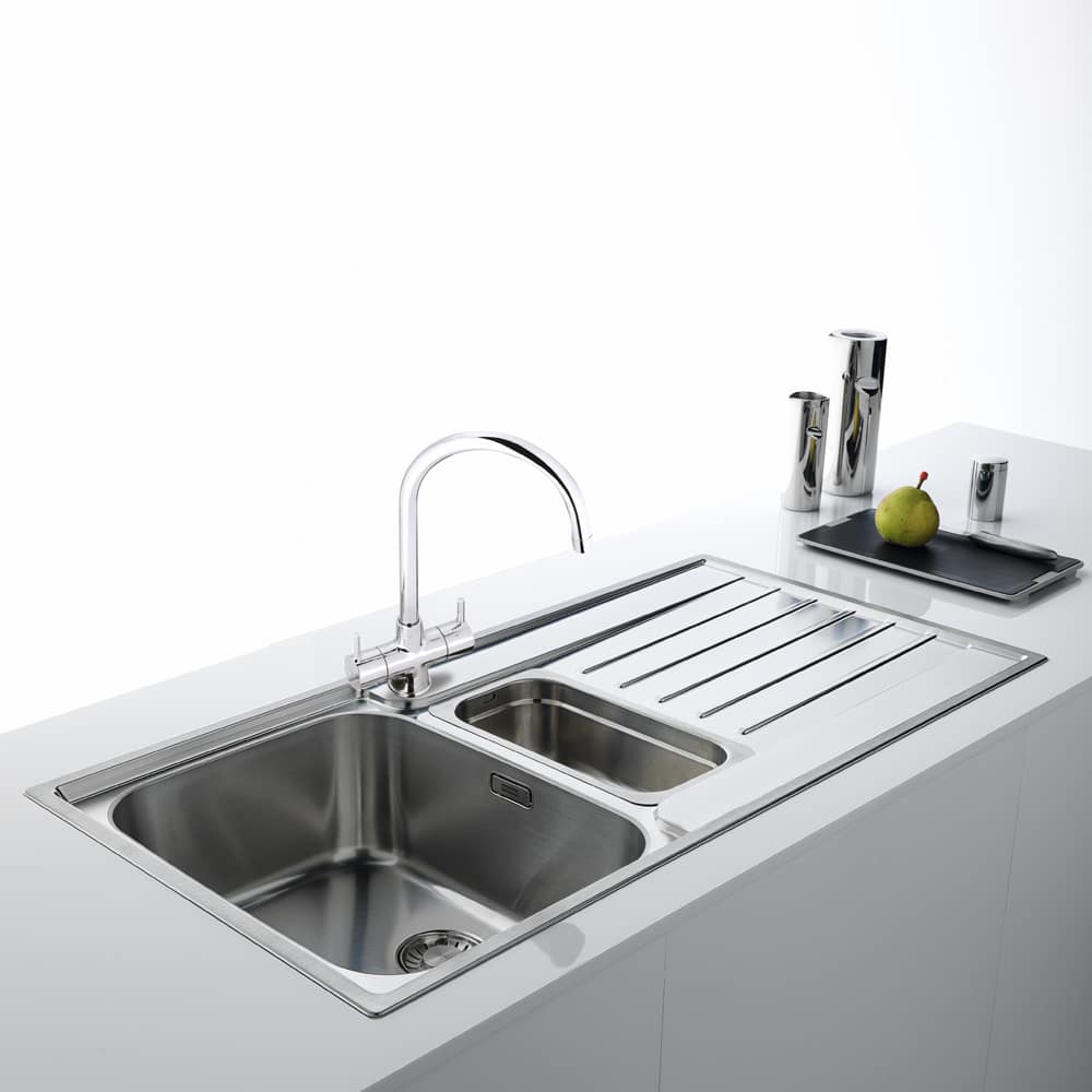 The Argos 1.5 bowl sink with reversible drainer is ideal for any kitchen. The silk steel finish is durable and hard wearing, while looking sleek with an easy to maintain surface. The small bowl is perfect for peeling vegetables and you could even fit a waste disposal unit.