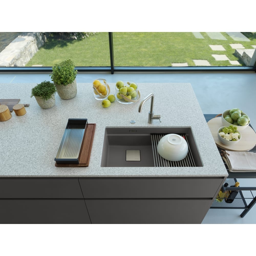 Made using Franke’s pioneering Fragranite, this Kubus sink is hard wearing with a great stone grey finish, creating a striking focal point in your kitchen. There’s a full size bowl and half size bowl for versatile use.