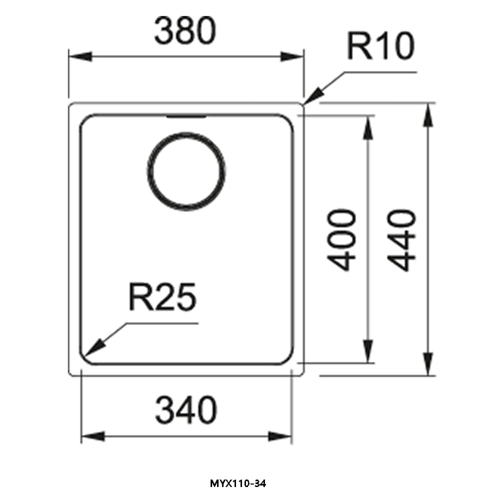 Franke MYX110-34 Mythos Single Bowl Undermount Sink – STAINLESS STEEL