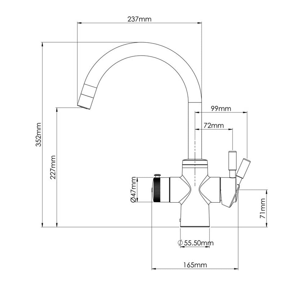 Dimensions: 352mm full height, 227mm height from base to tip of spout, 237mm throw.