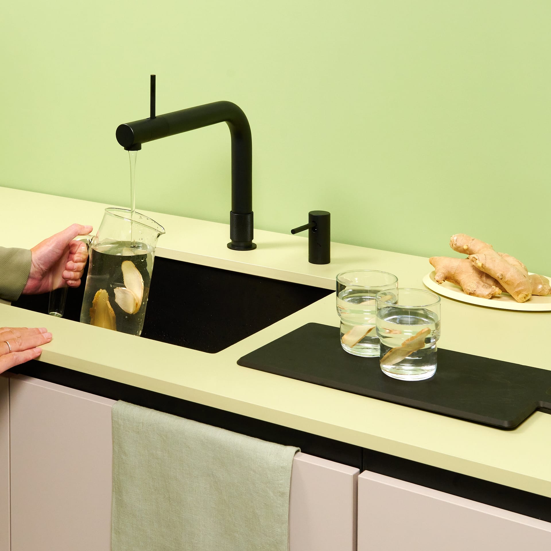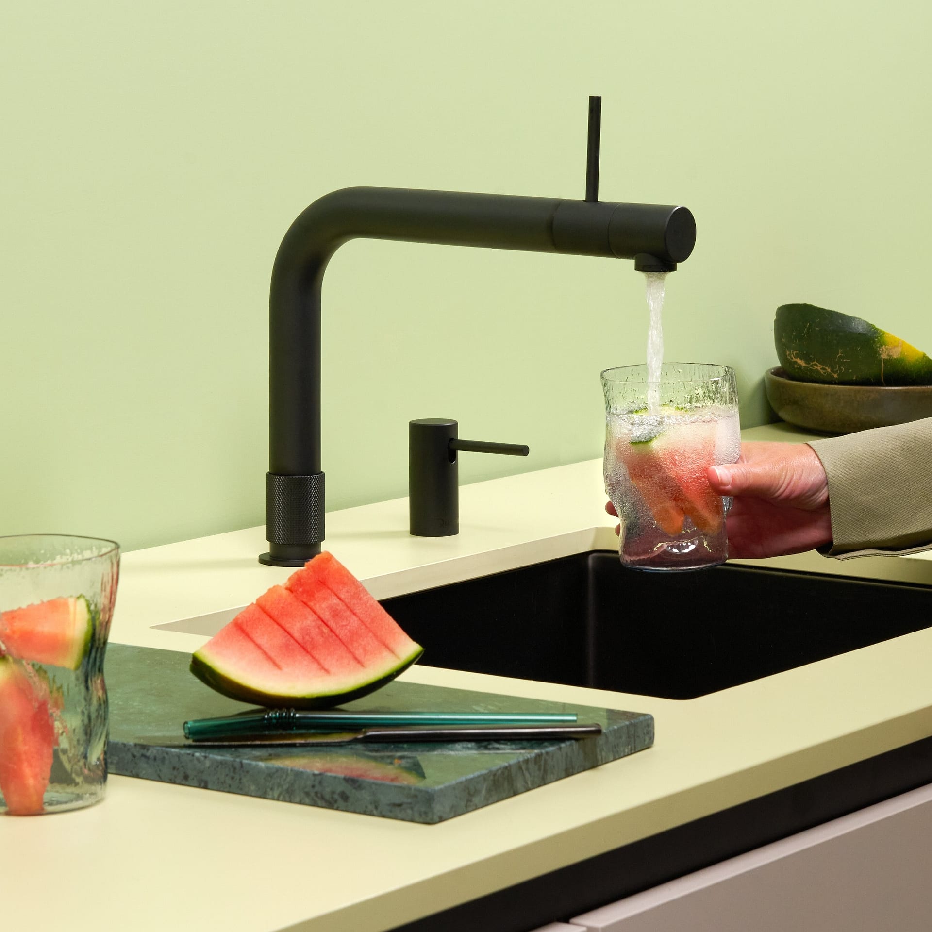 Dispenses hot, cold and 100°C purified water from a single spout when connected to a hot & cold supply