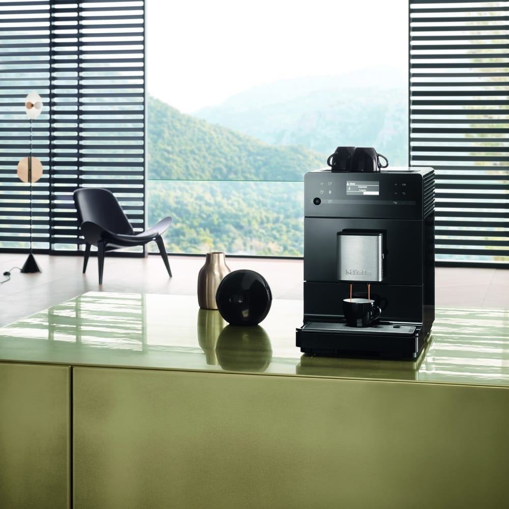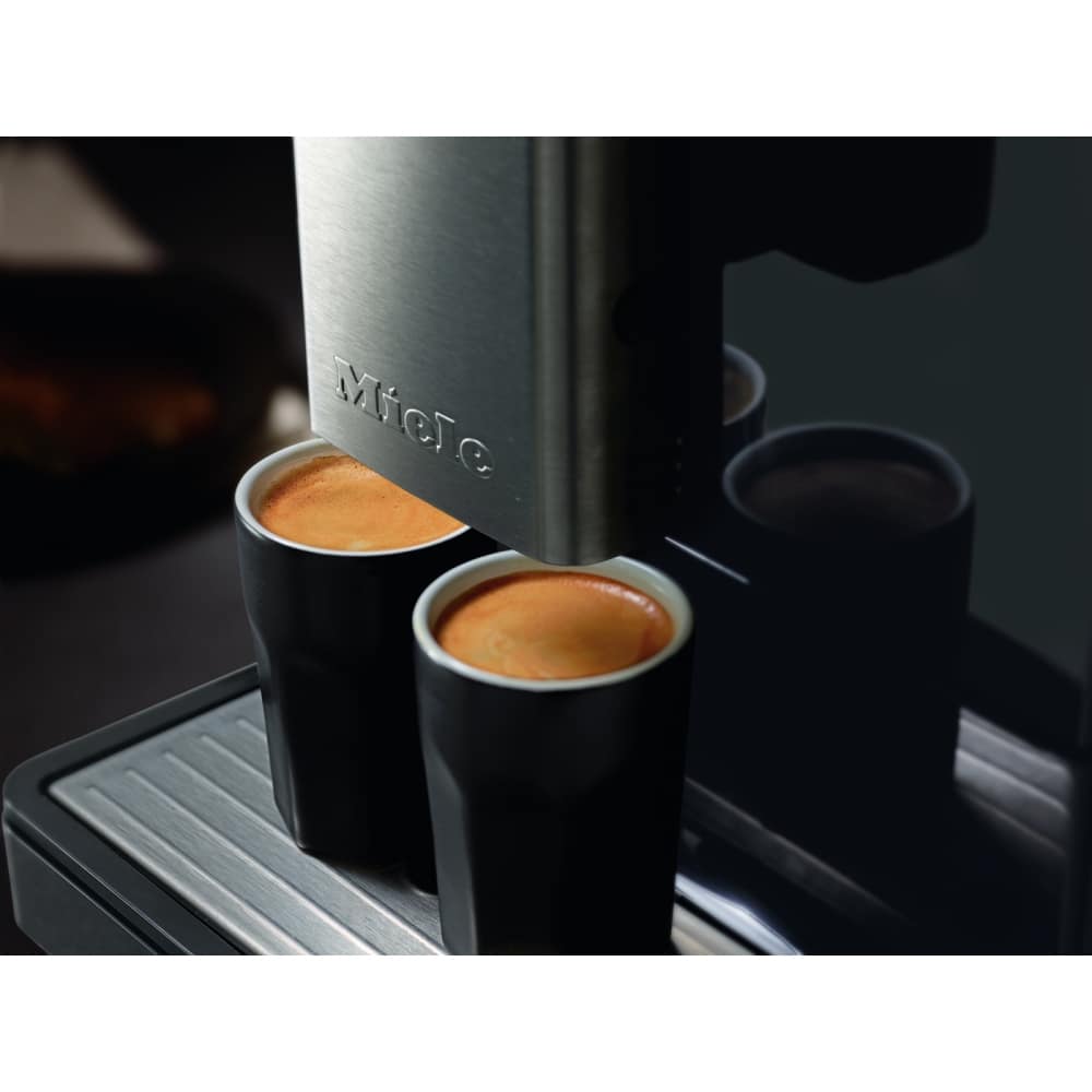 The Miele CM5310OB freestanding coffee machine is finished in obsidian black with easy to use controls. It offers you automatic programmes for the perfect cappuccino and latte macchiato, and with handy automatic rinsing, it couldn’t be easier to keep clean. If you’re having friends round you can even prepare two coffees at the same time using the twin spouts.